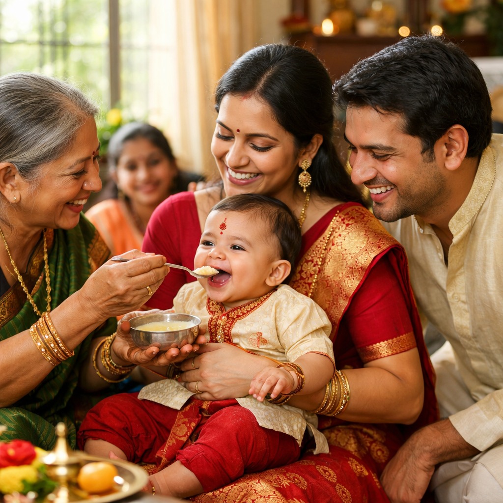 This Sanskar symbolizes growth, nourishment, and healthy development.